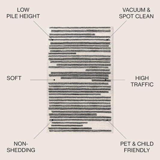 JONATHAN Y MOH207A-8 Khalil Modern Berber Stripe Indoor Farmhouse Area-Rug Bohemian Minimalistic Striped Easy-Cleaning Bedroom Kitchen Living Room Non Shedding, 8 X 10, Cream,Black - Retail $122