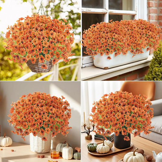 Uieke 16 Bundles Artificial Fall Flowers No Fade Faux Autumn Plants, Fake Indoor Outdoor Greenery for Thanksgiving Table Centerpiece Christmas Wedding Party Home Garden Fireplace Décor (Orange)