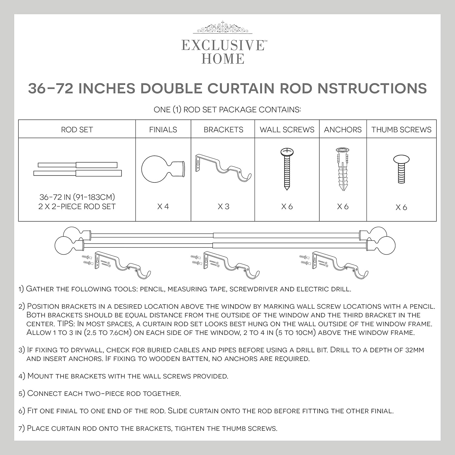 - DOUBLE WRAP AROUND DESIGN: The Exclusive Home Fetter Wrap Around double curtain rod is curved at both ends, allowing curtains to sit flush with the wall and wrap around the entire window and block light, depending on the opacity of your drapes.