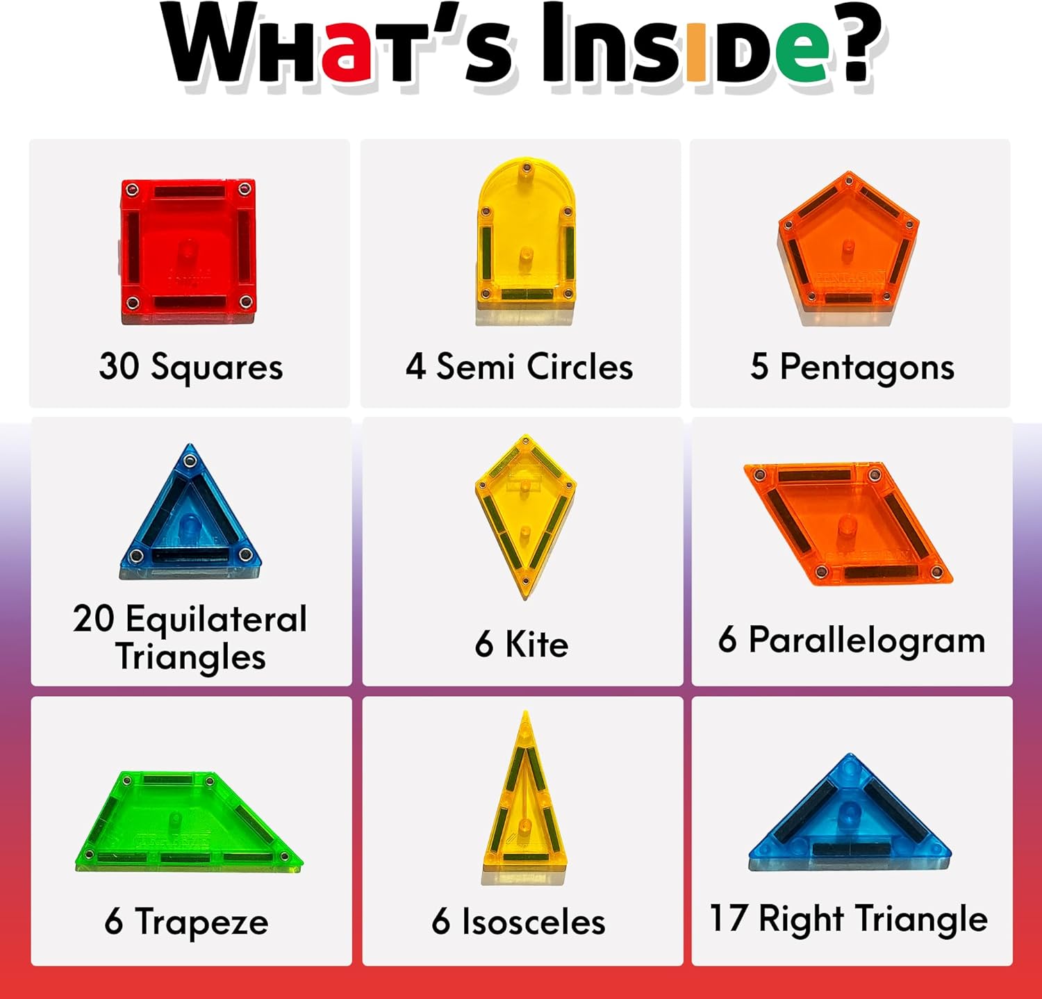 - Child-Friendly Design - Keep your little ones safe during playtime with our Phthalates and lead-free STEM magnetic tiles. Designed with their well-being in mind, our magnet blocks for kids provide a safe and enjoyable learning experience for children of all ages.