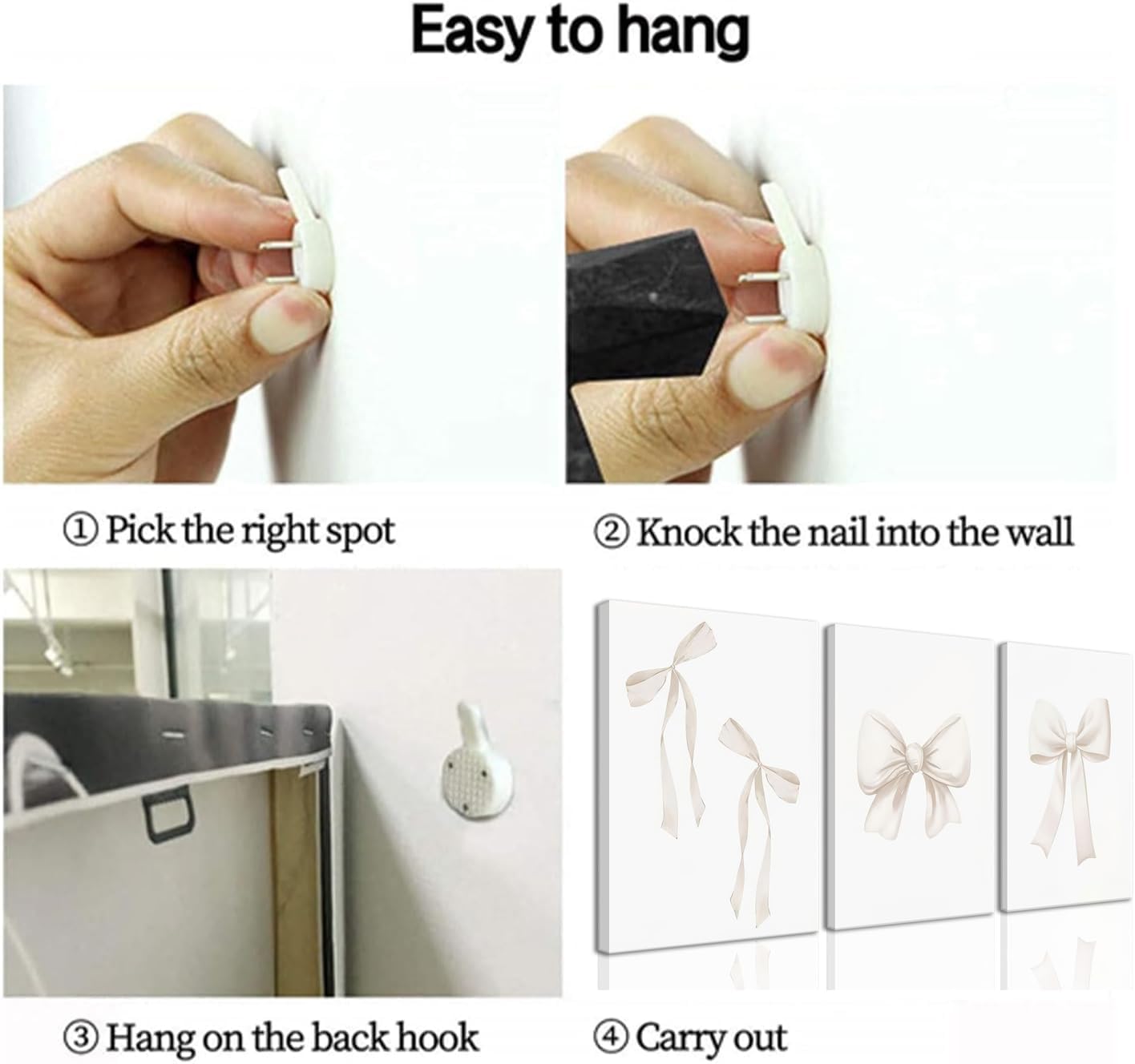 - Bow Wall Art:Each piece in this set measures 16x24 inches, making them versatile for various spaces. Whether it's for a girl's bedroom, a trendy college dorm, or a chic apartment, these posters are perfectly sized to enhance the room's appeal without overwhelming the walls.
