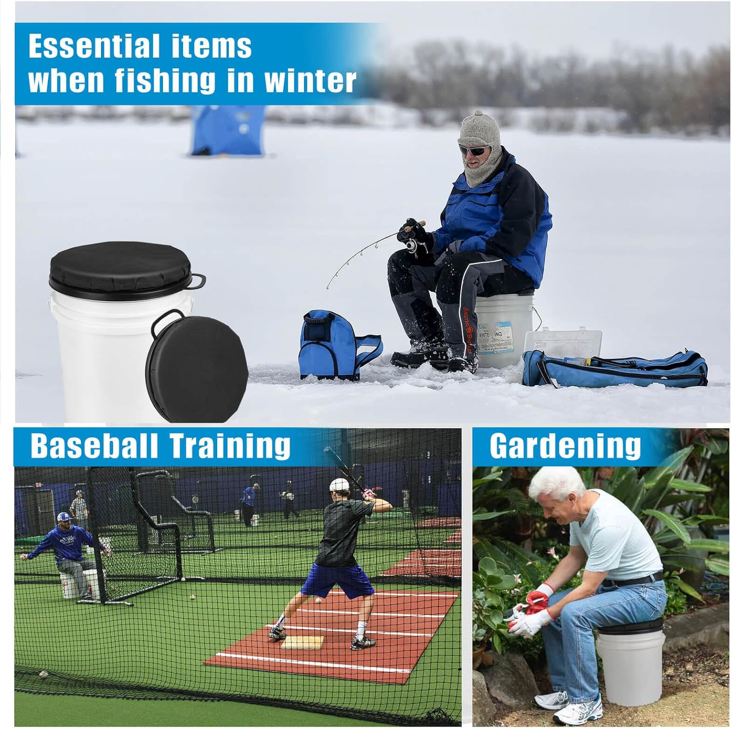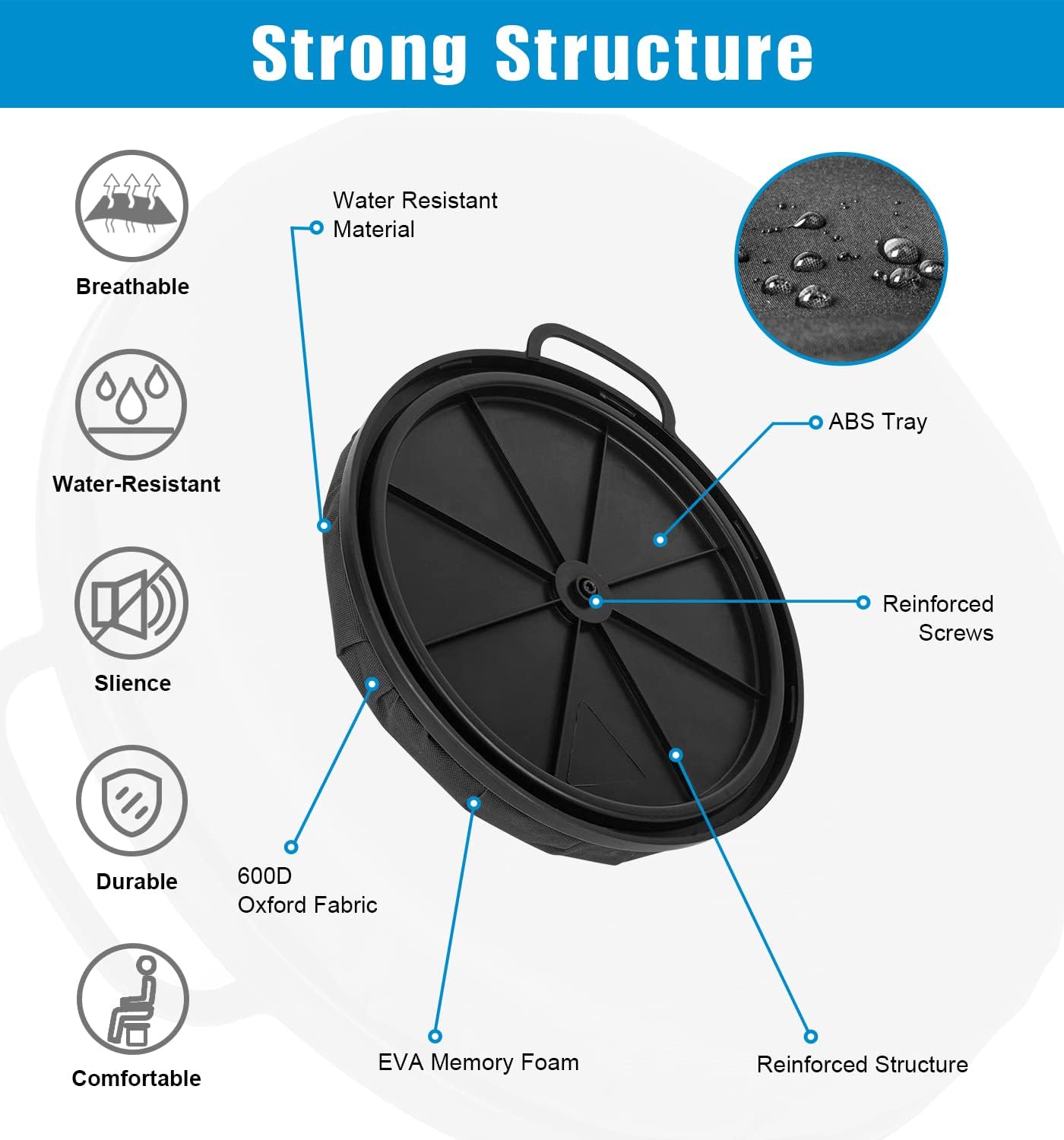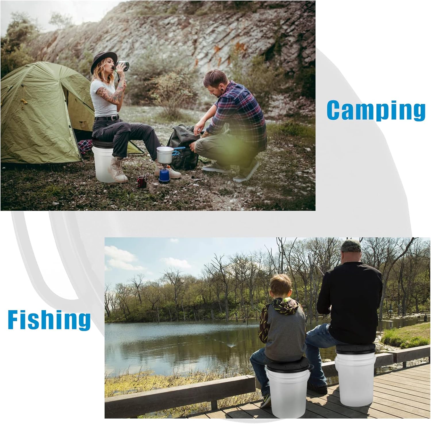 Foxtune 5 Gallon Bucket Seat Lid, 360 Degree Swivel Foam Bucket Spin Seat Cushion with Padded Top for Fishing, Hunting, Baseball Gardening and Camping, Silent, Comfortable, Water-Resistant
