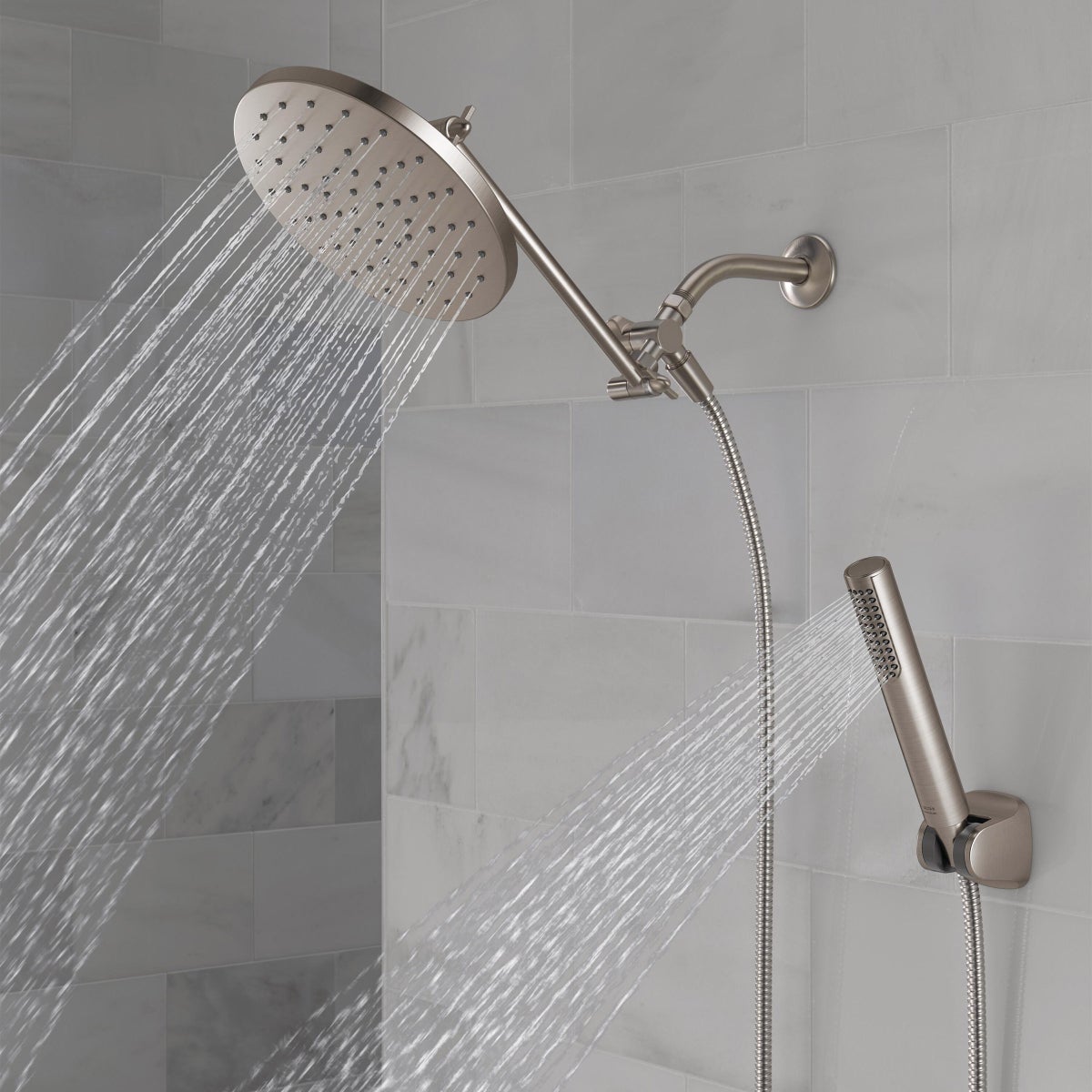 - Delta Adjustable Shower Head with Hand Shower Single-Setting Full Spray Hand Shower