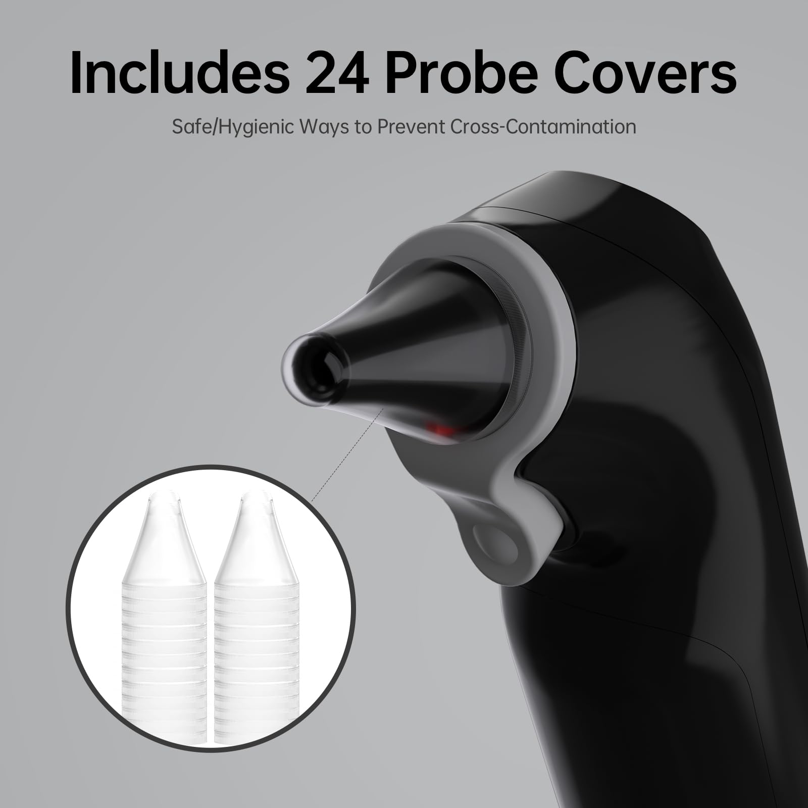 Ear Thermometer, Highly Accurate Ear Thermometer for Kids, Adults and Babies, 30 Memory Recall, 1s Result and 3-Color Fever Alert, with 24 Disposable Probe Covers, Black