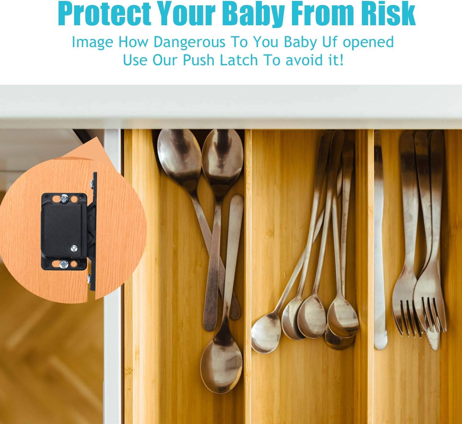 - Protect Your Baby From Potential Risk - Our camper latches also can be used to add more security on cabinets and drawers in the home kitchen and rooms. Ideal great affordable accessory to prevent your children from potential risk and make your pets stopping opening the drawers and cabinets. Protect your baby with our cabinet drawer latches from chemical,sharp things and other dangerous things stored in your home kitchen