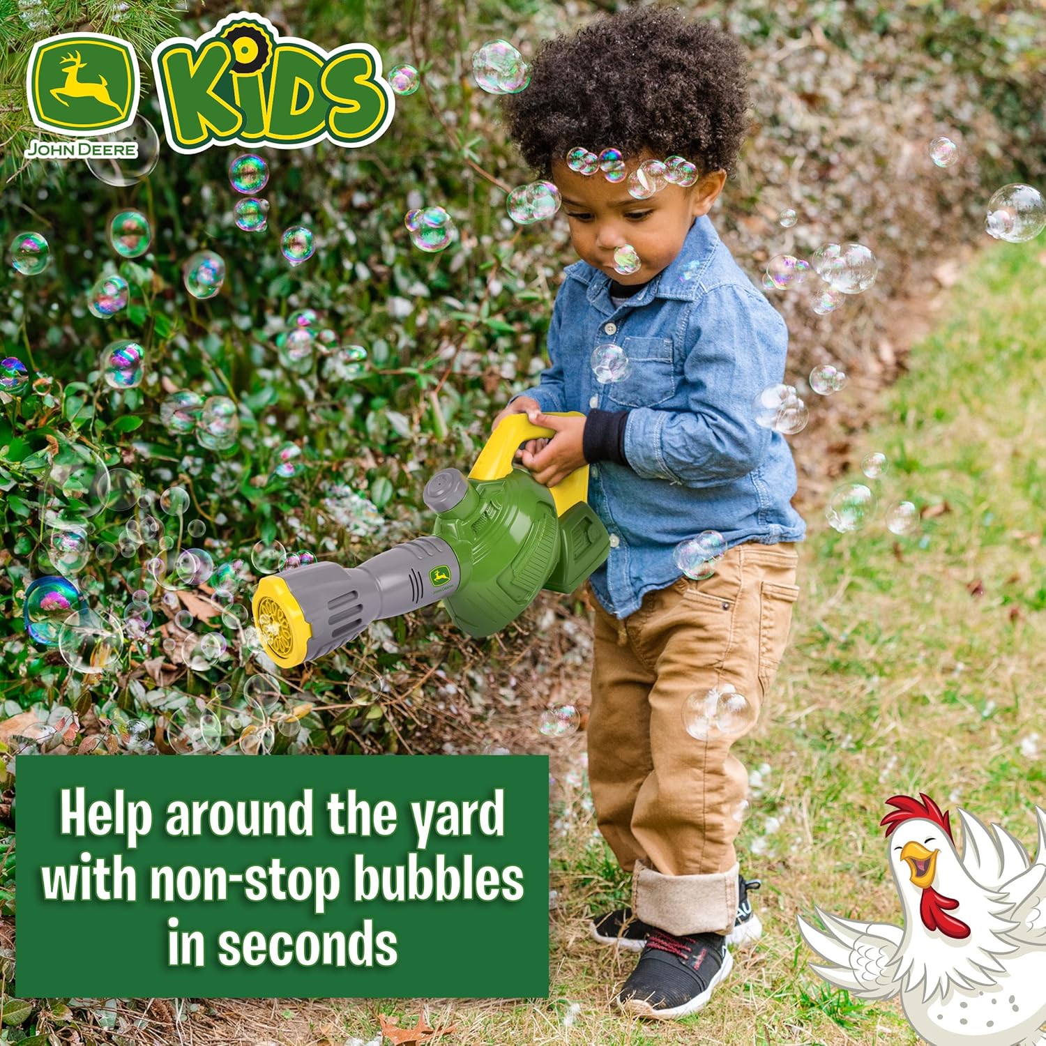 - Help around the yard with your very own John Deere bubble leaf blower! Blow a continuous stream of non-stop bubbles without losing your breath.