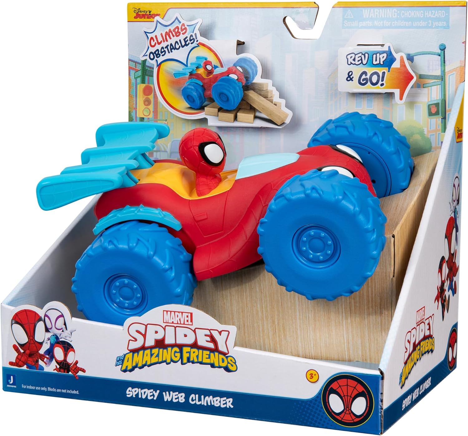 Jazwares Marvel Spidey and His Amazing Friends Marvel Spidey Web Climber - 7-Inch Rev Up Motor Vehicle That Climbs Obstacles