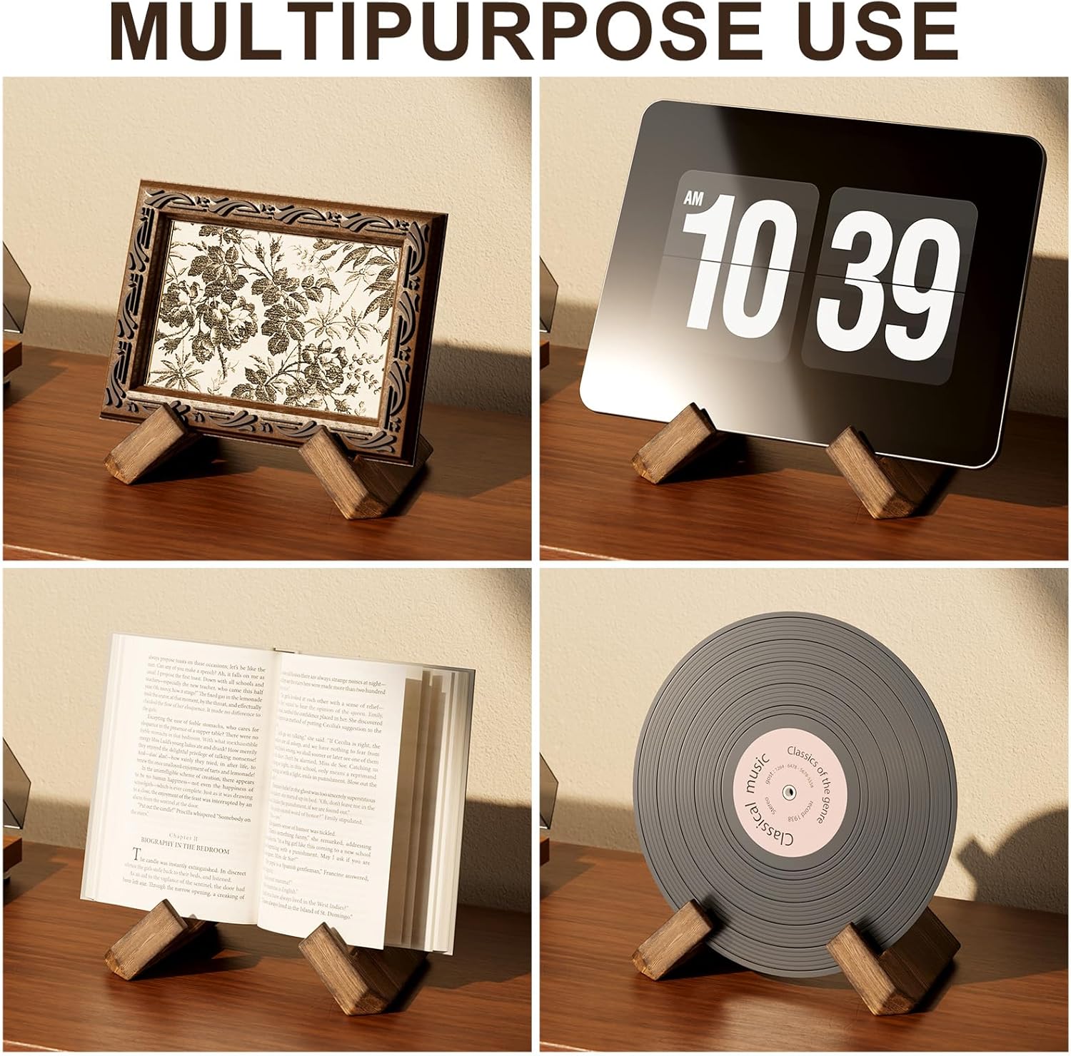 Wooden Plate Stands for Display, Wood Plate Holders for Displaying, Decorative Picture Frame Stand, Easel for Sign, Cookbook, Now Playing Vinyl Record, Recipe Book Holder for Photo, Plaque, Platter