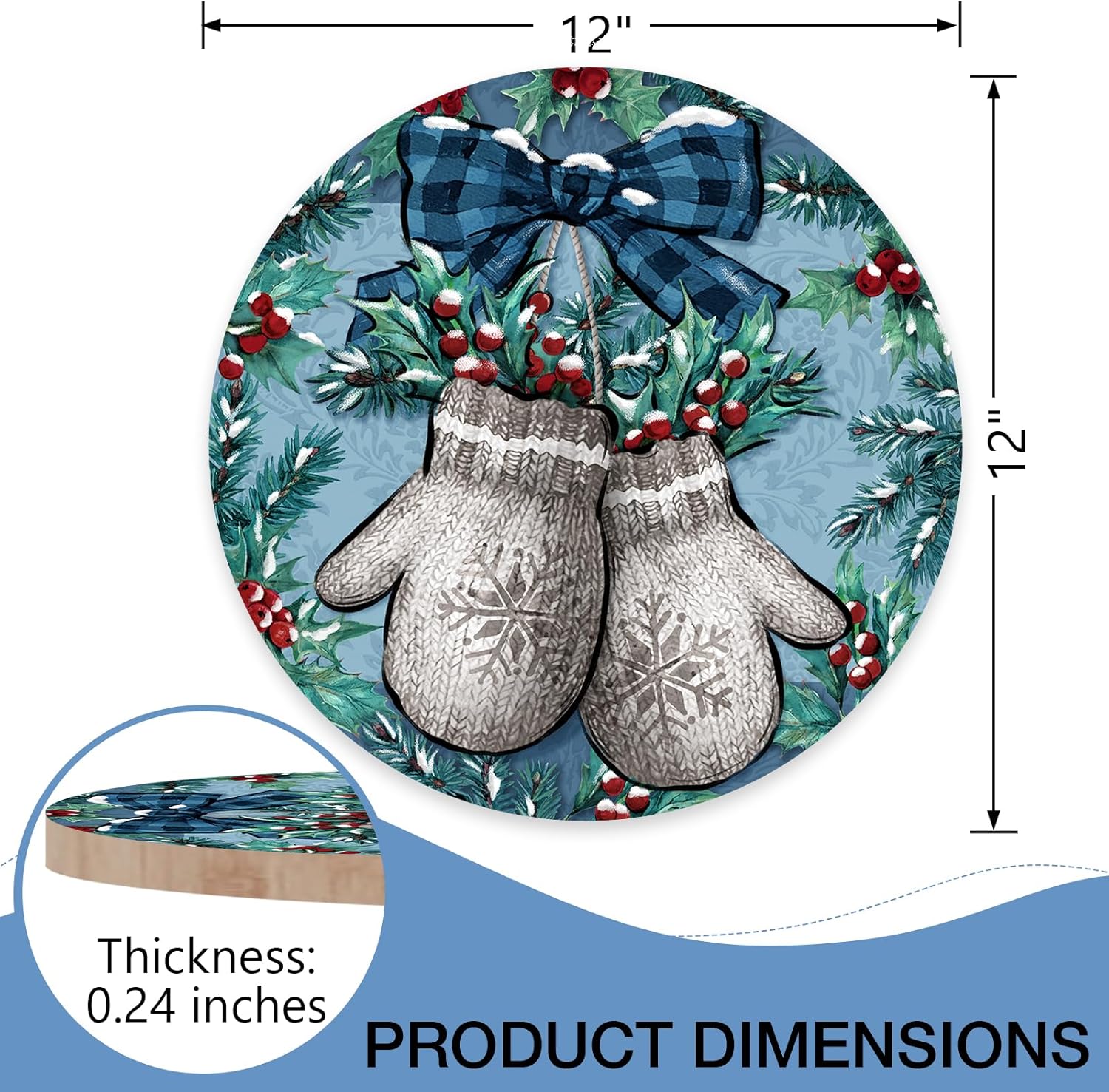 - Unique Design: Our rustic door pediment design is unique and beautiful. The mitten, red berries, pine branches, blue tartan checker bow, snowflakes patterns are printed on the wooden board, which is suitable for winter, Christmas, Xmas. This farmhouse front door sign will bring more fun to your house and show the best welcome to your friends