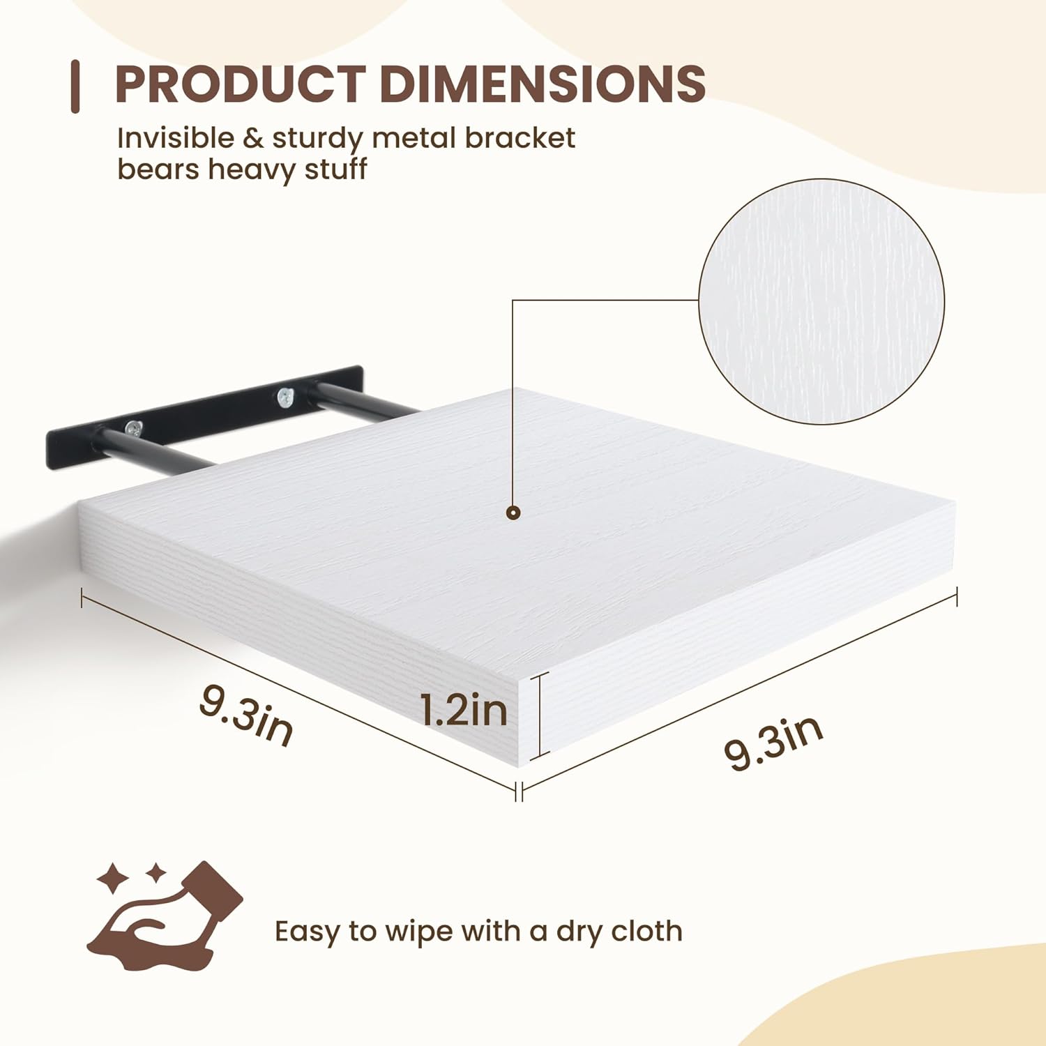 - Stylish and Modern Design: This set of 3 floating square shelves (12 inches each) features a sleek matte finish and minimalist aesthetic. Made from durable faux wood, they offer a contemporary storage solution that seamlessly blends with any home décor.
