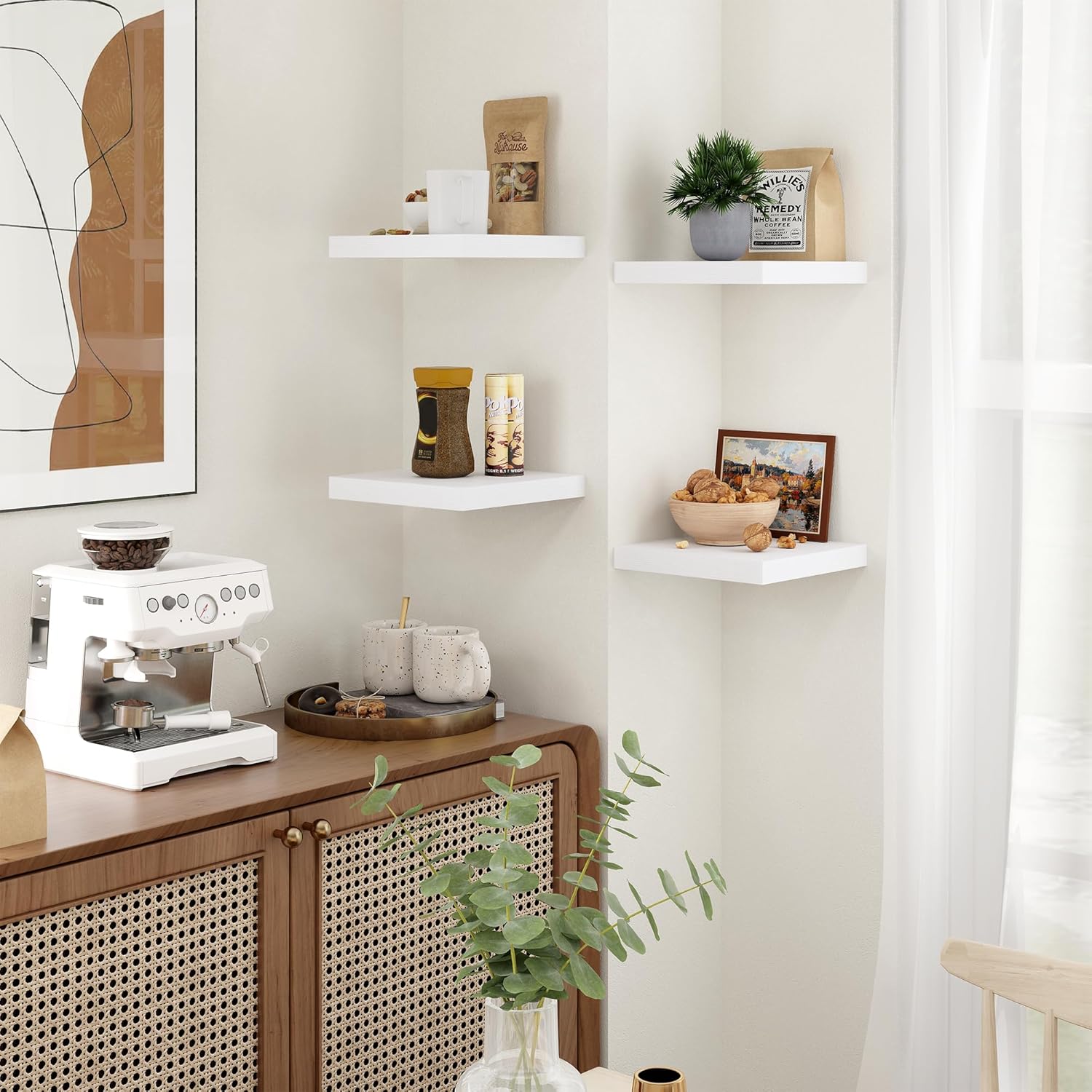 - Invisible Bracket System: Each shelf is supported by an invisible bracket system, creating a "floating" effect that enhances the sleek, modern look of your space. The hidden brackets eliminate visible hardware while providing sturdy support, with each shelf holding up to 8 pounds without compromising stability.
