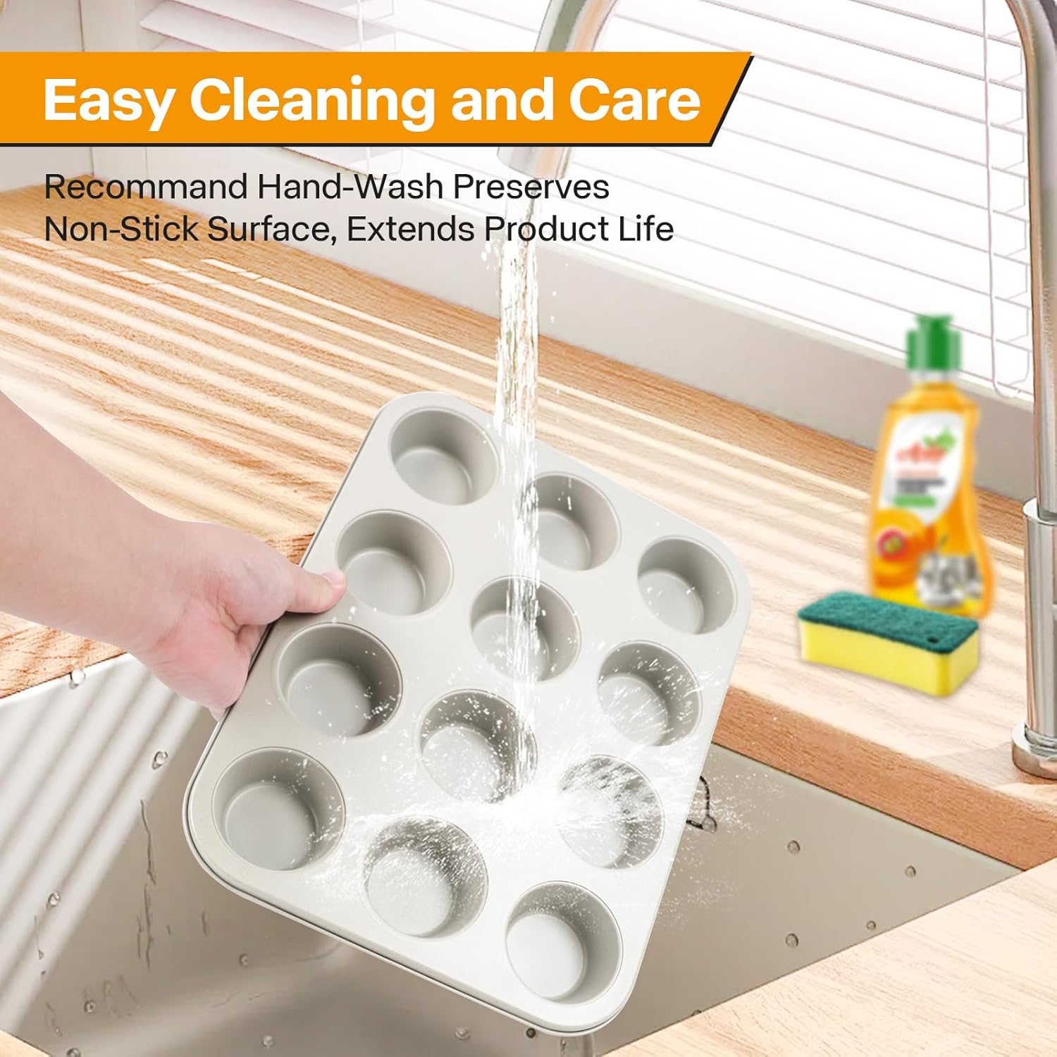 - Non-Stick Coating: Designed with a premium non-stick surface, non-toxic materials, this ceramic-coated cupcake pan is perfect for health-conscious baking, ensuring easy release of muffins and cupcakes every time.