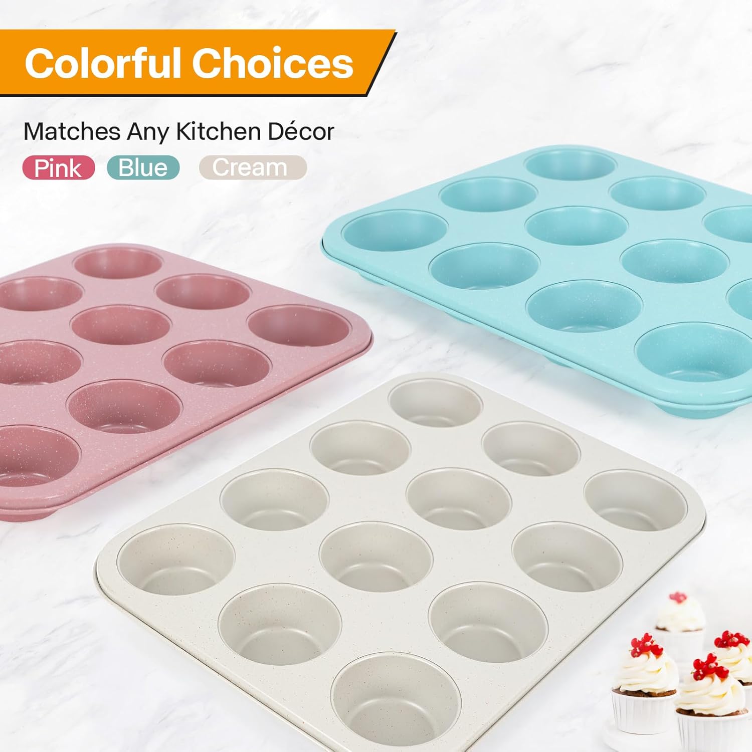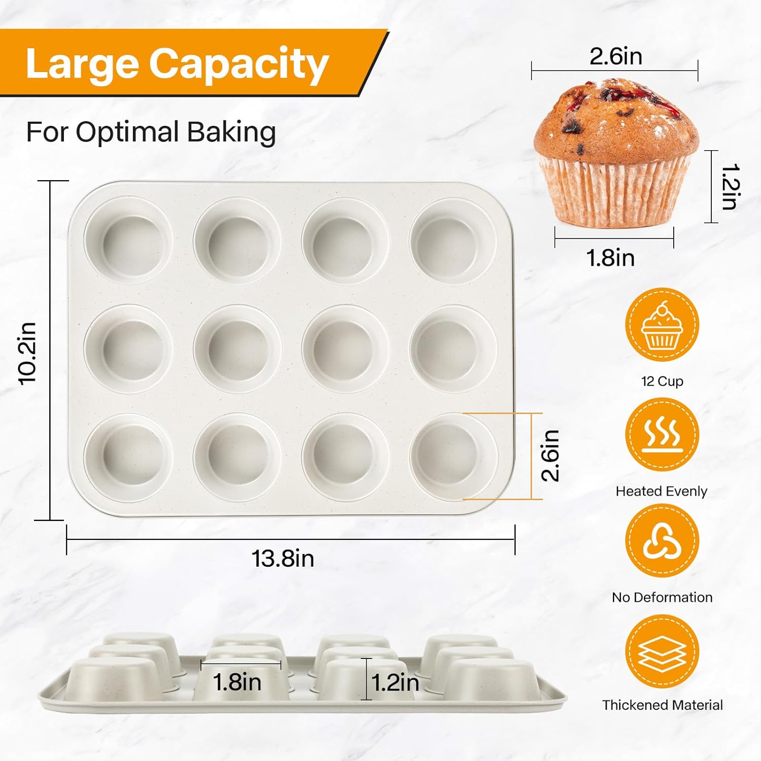 2-Pack Healthy Baking Cupcake Pan| Non Stick 12-Cup Muffin Pan | Durable & Easy Clean Muffin Tin | Perfect for Cupcakes, Muffins (Beige)