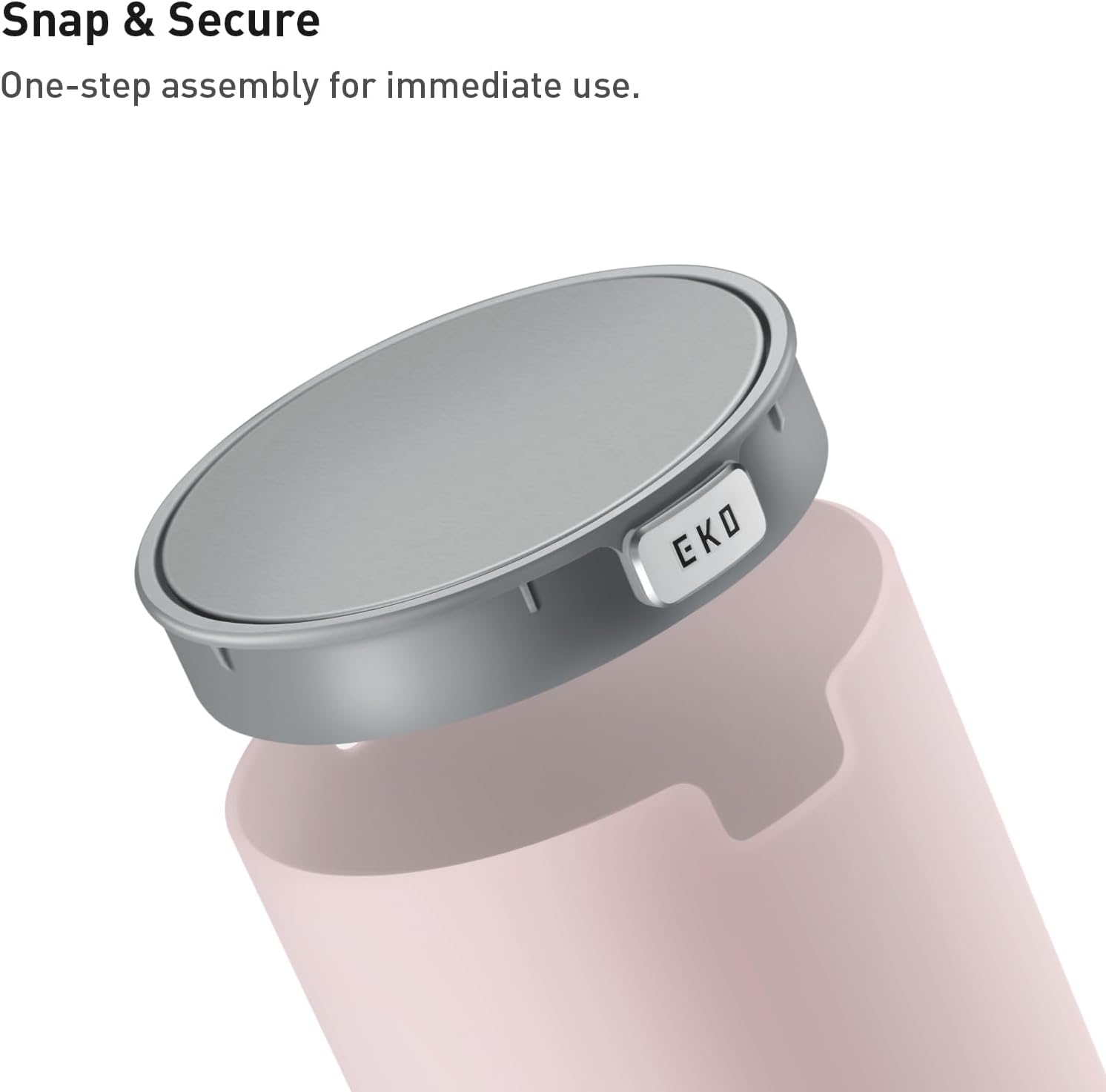 EKO Mini Desk Trash Can with Swing-Top Lid 0.4 Gallon Small Table Round Wastebasket for Office, Home, Car (Pink)