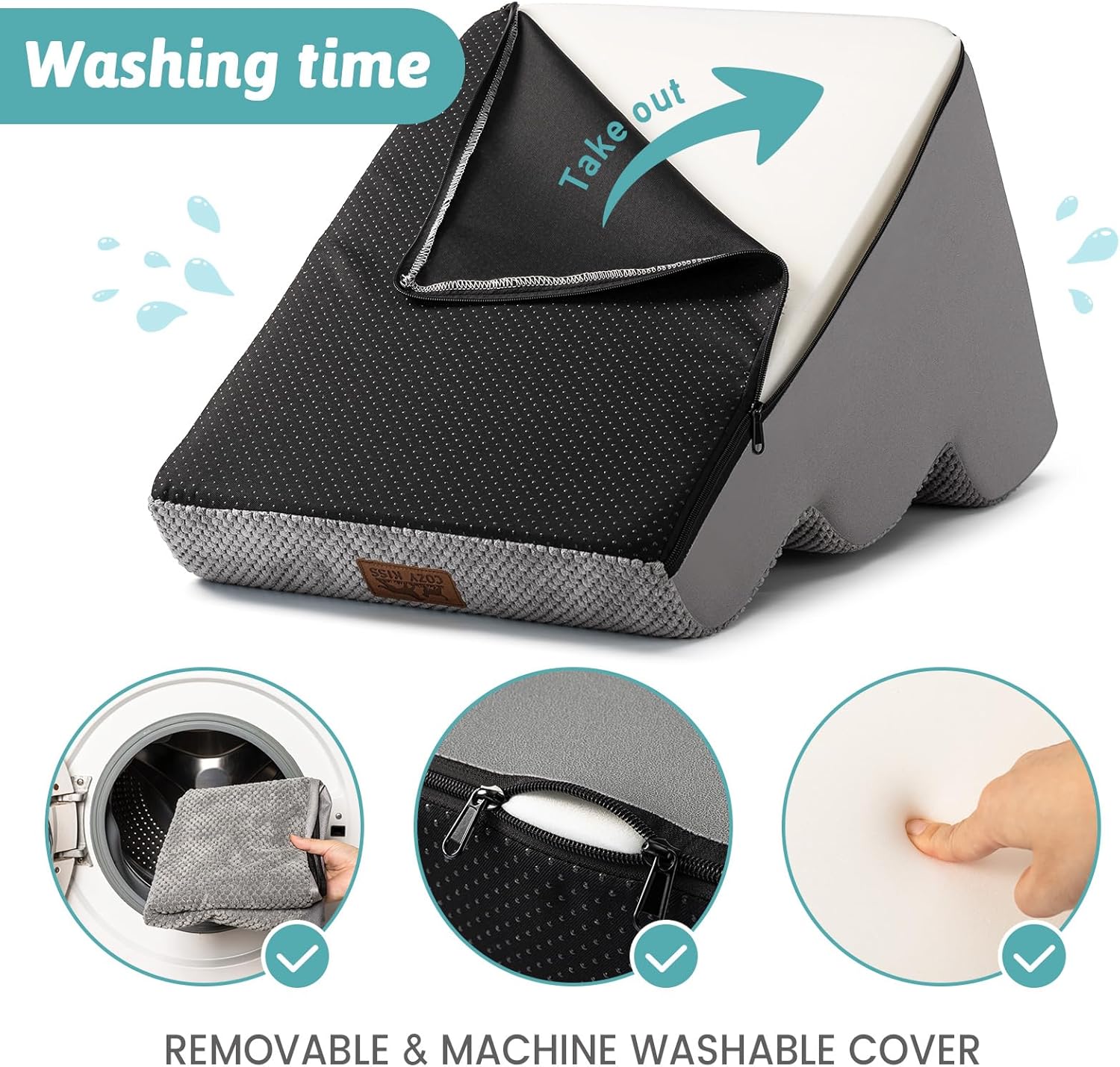 - NOTE & CHOOSE: This staircase is not suitable for large dogs. The inner foam is not washable. Note: Please cover the cover before the sponge is fully fluffy to avoid being unable to cover. 2 layers are suitable for chairs, 3 layers are suitable for sofas or couches, 4 layers are suitable for beds, and 5 layers are suitable for high beds or cars. Please be sure to confirm whether the size is suitable for you first