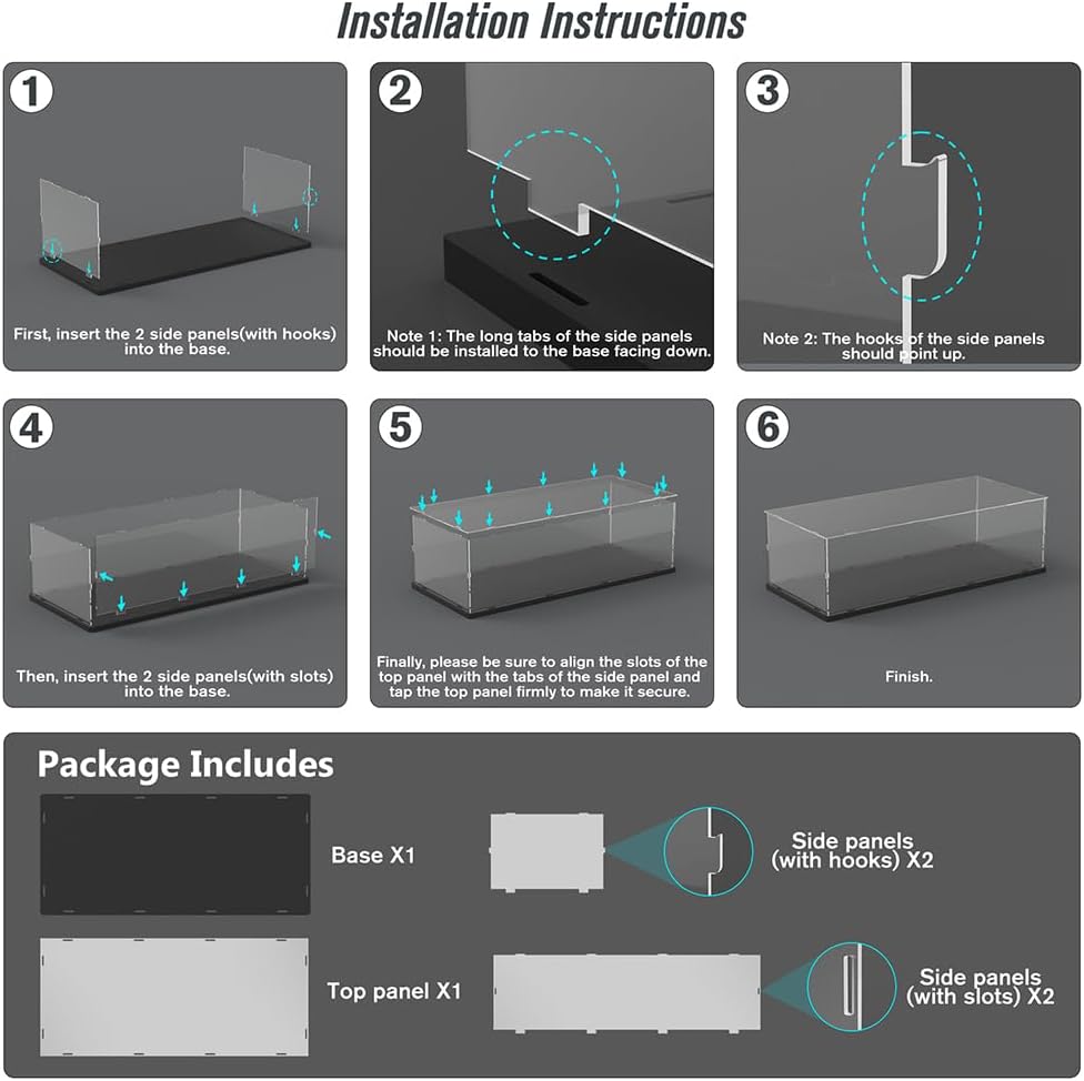 - 【Clear and Solid Display Box】We choose 3mm thick acrylic board, the light transmittance is 98%, more clear. Display box with solid base, the whole structure is stable and durable after assembles, and allow stacking. High-quality materials make sure long-term use.