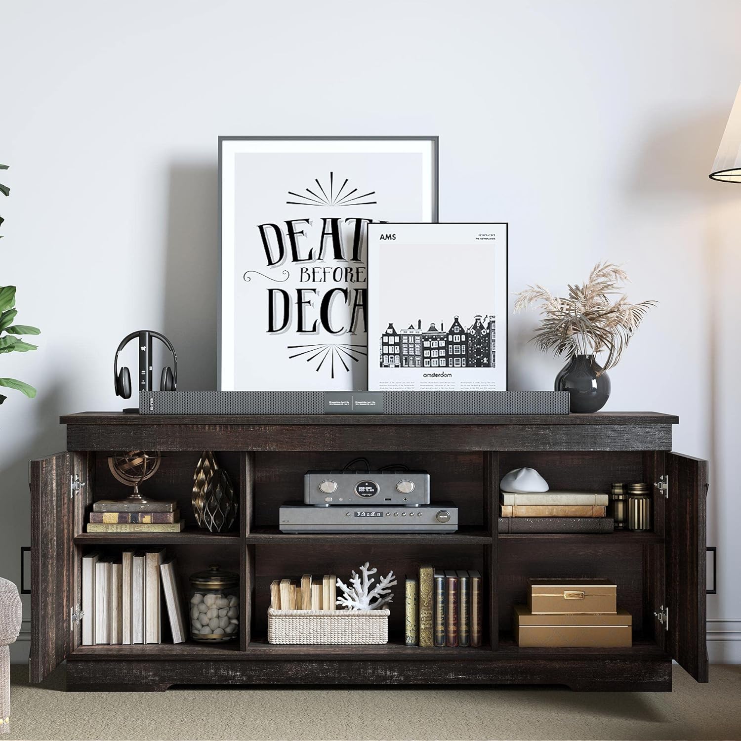 - LARGE STORAGE SPACE - This rustic TV stand features spacious tabletop, half open & closed compartments, which offers you ample space for displaying daily items or hiding objects that you don’t want to see
