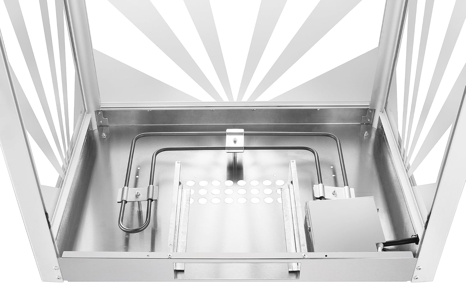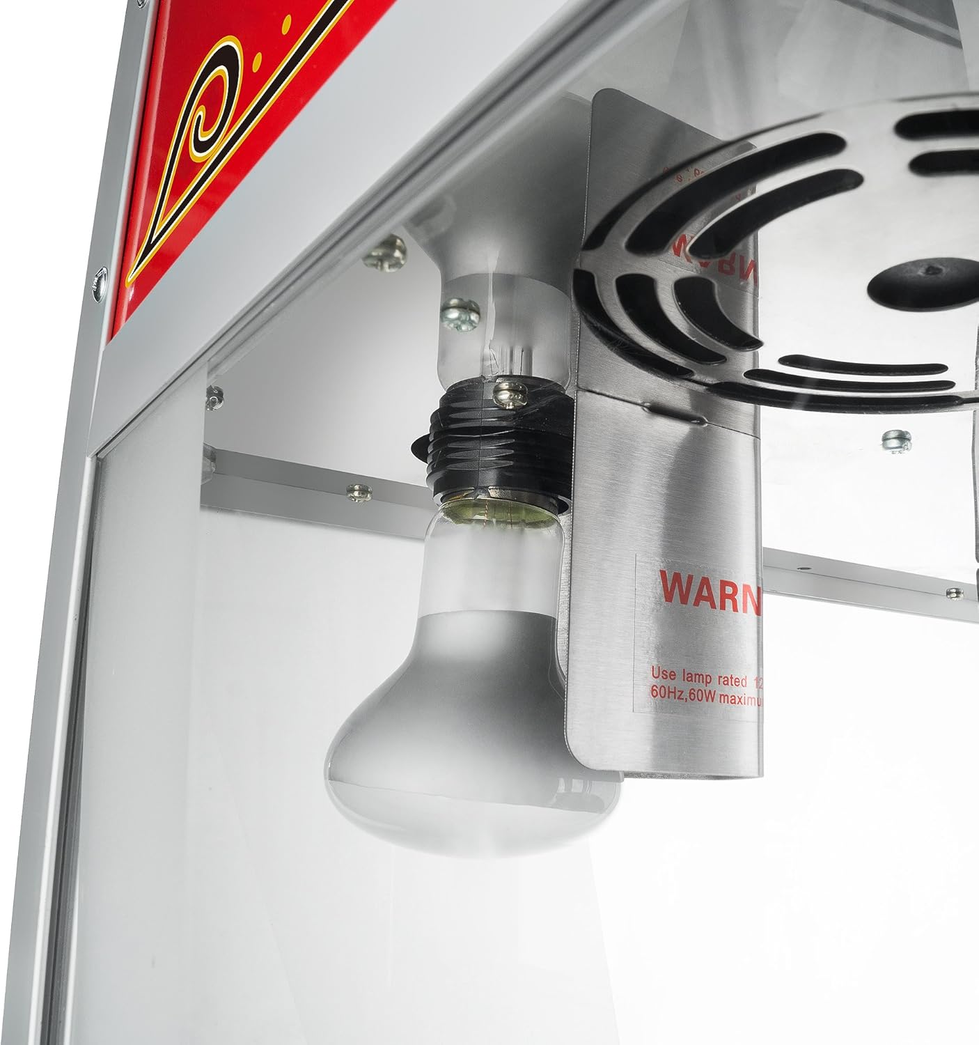 - EASY TO USE - With stainless-steel and tempered glass food zones, this machine makes popping popcorn fast and simple. The 3-switch design allows you to use the kettle heater and stirrer, overhead light, and warming deck independently of each other.