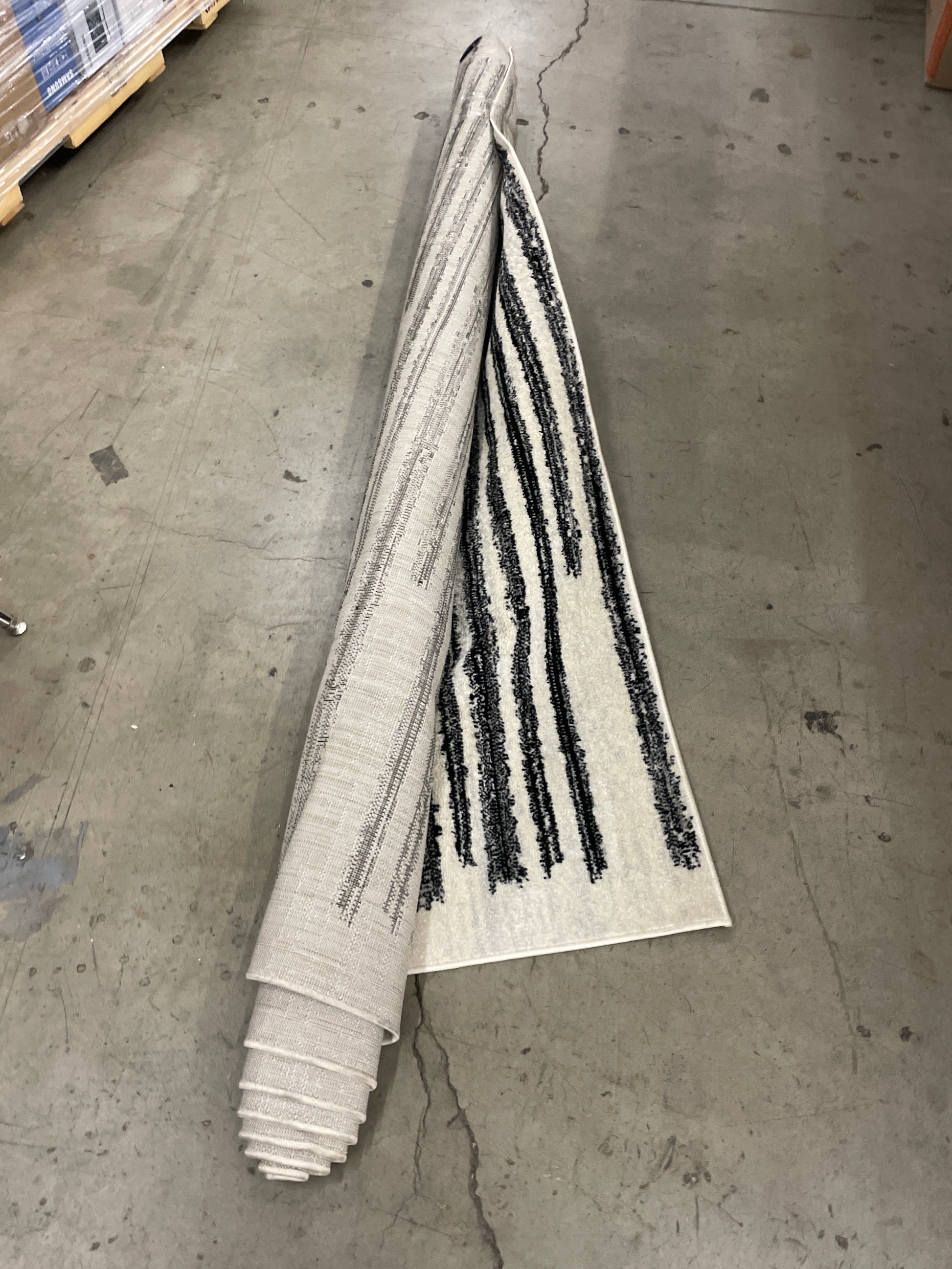 - The ivory and black color scheme reproduces the look of neutral, mid-century tribal rugs