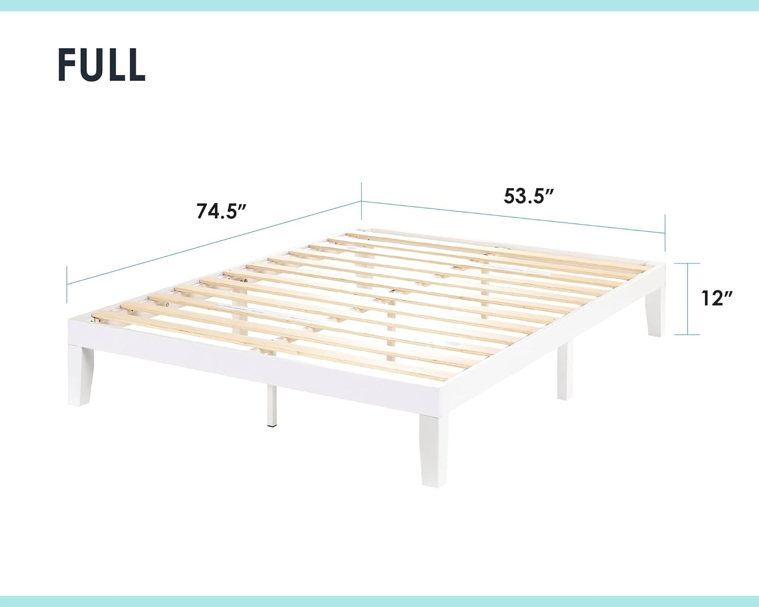 Mellow Naturalista Classic 12 Inch Solid Wood Platform Bed with Wooden Slats, Full, White