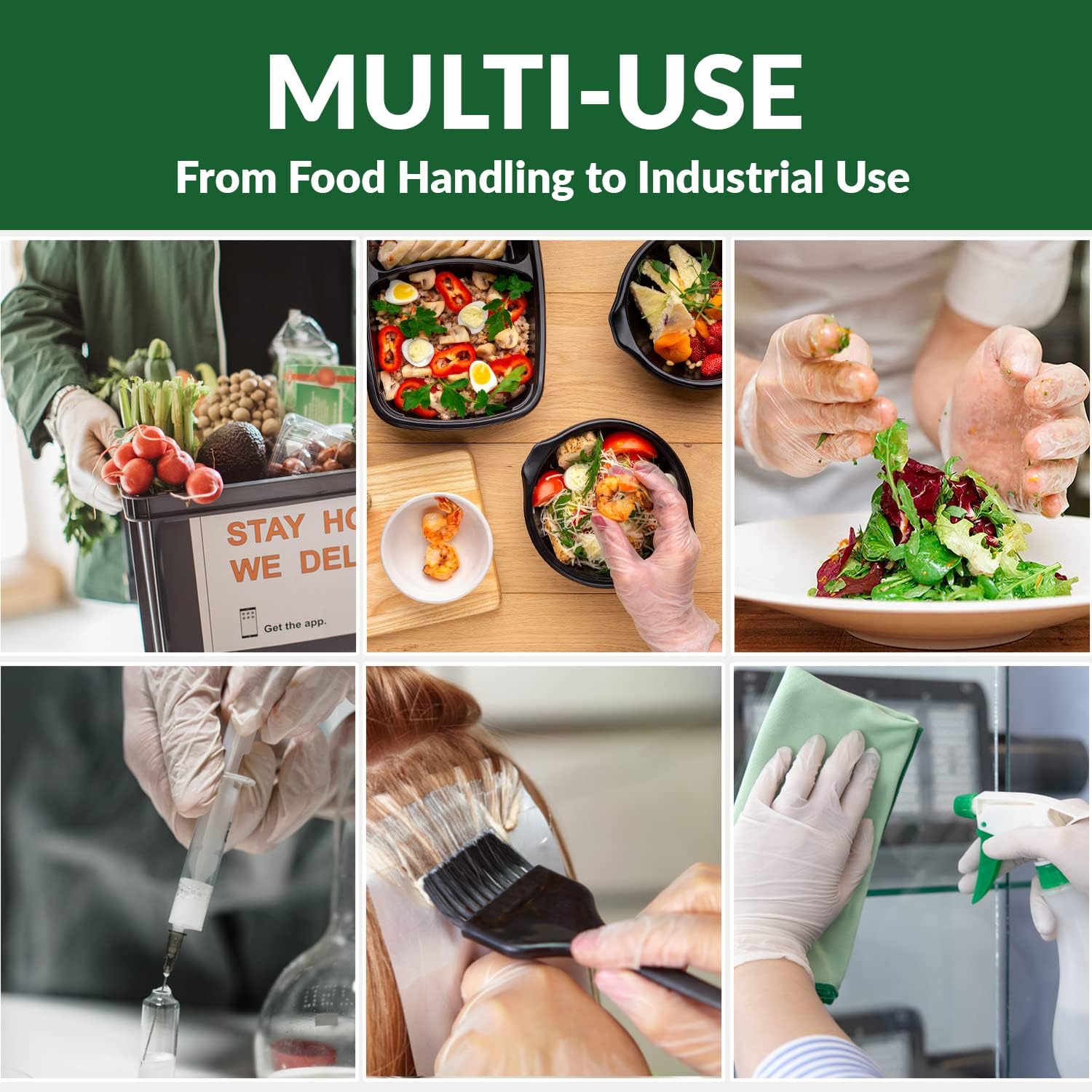 FOOD SERVICE or INDUSTRIAL USE : Perfect for All-Purpose Use, from Food handling to Industrial Use. Designed for delis, sandwich shops, concession stands, Industria, Cleaning, Tattoo Parlors, Hair Dyeing and MORE!