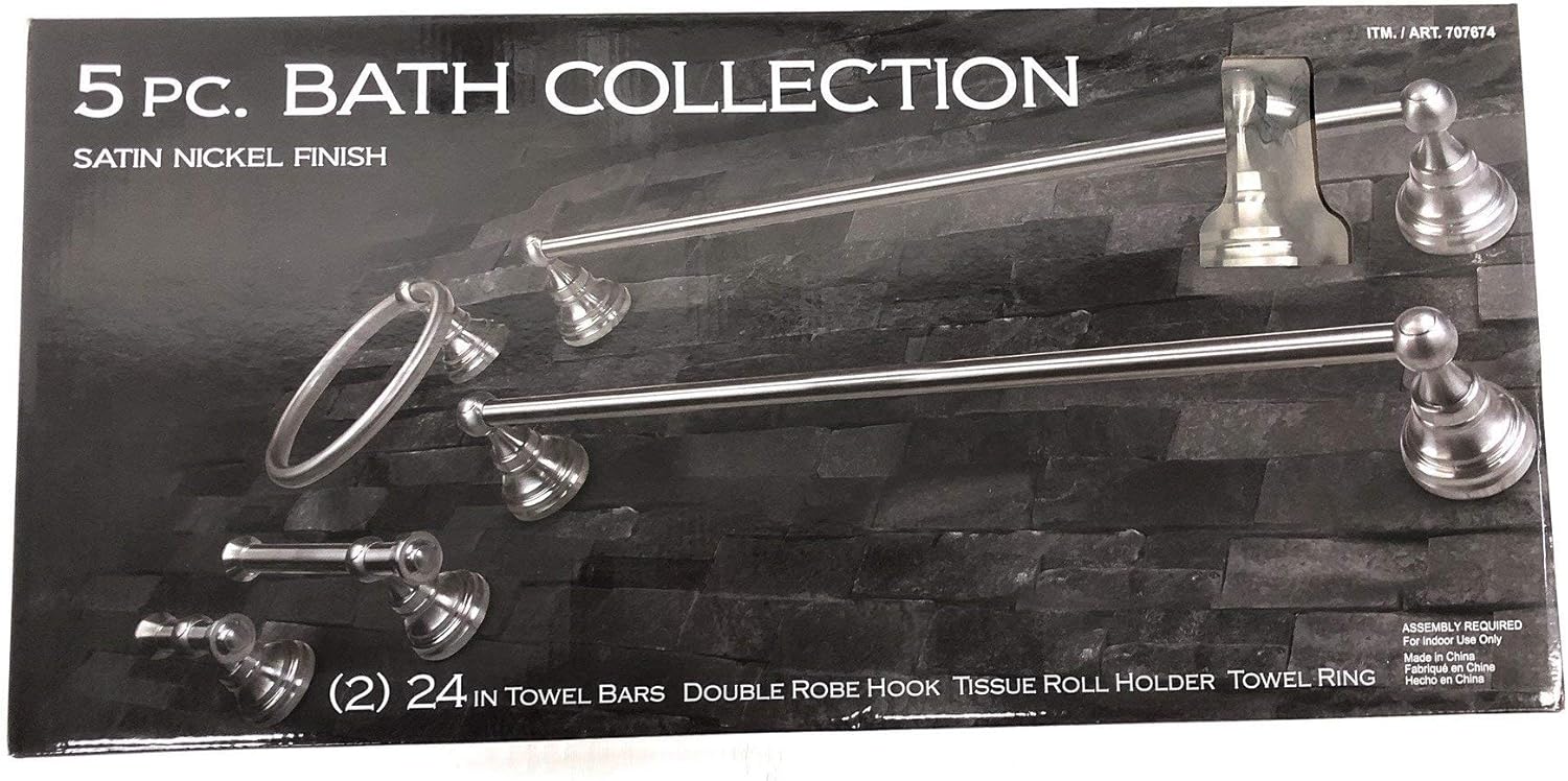 - Bath collection includes 2 Towel bars ( 60.9 cm / 24 in ), double robe hook, towel ring, and a tissue roll holder.