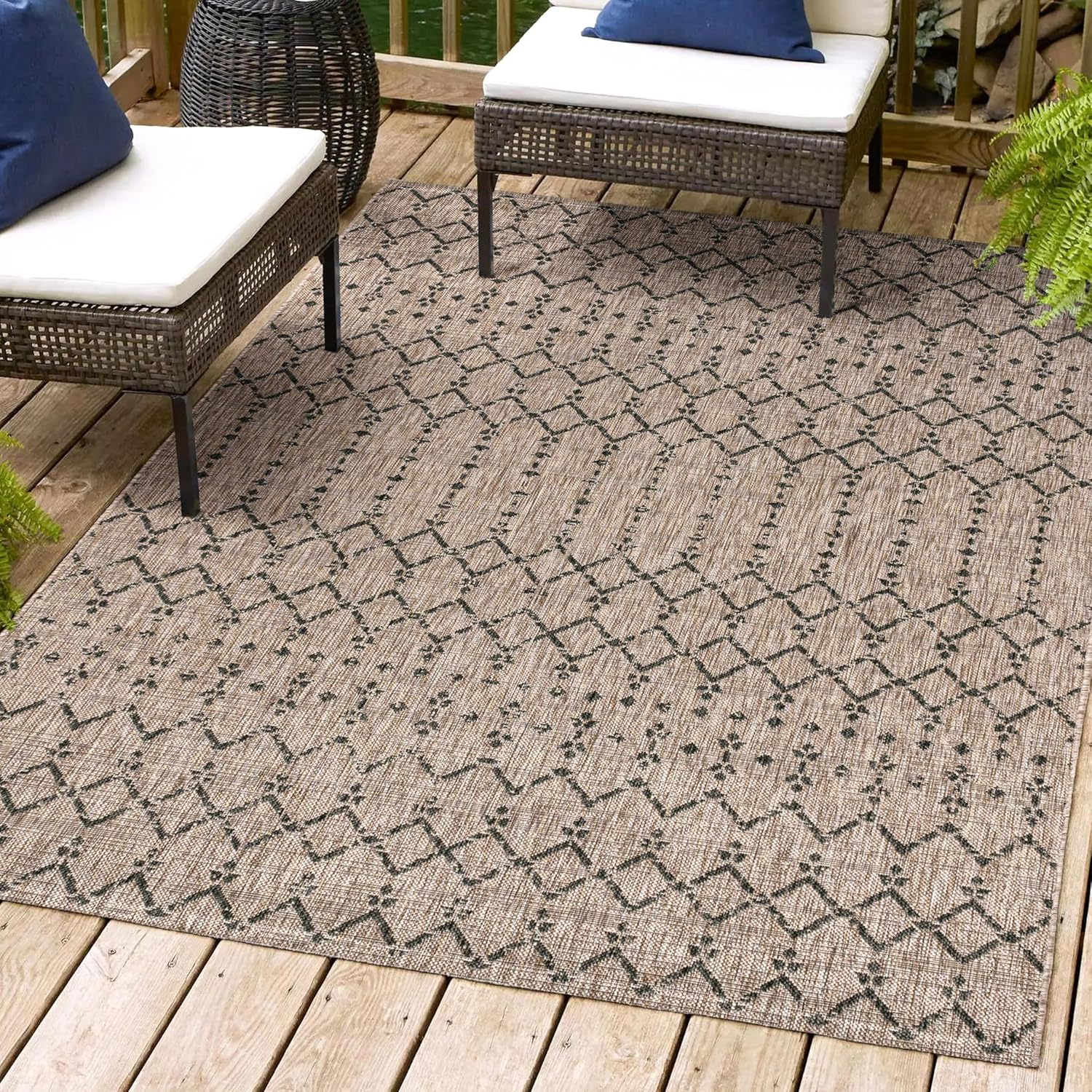 - INDOOR/OUTDOOR DURABILITY: Give your patio, deck or porch an instant makeover with an indoor/outdoor rug; Low-pile synthetic rug fibers are durable for high-traffic spaces like the kitchen, mud room or entry; Perfect for families with kids
